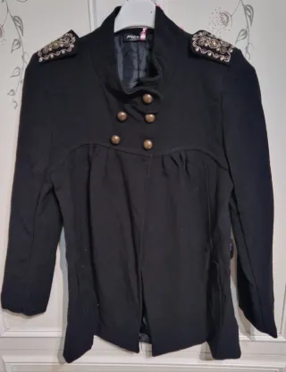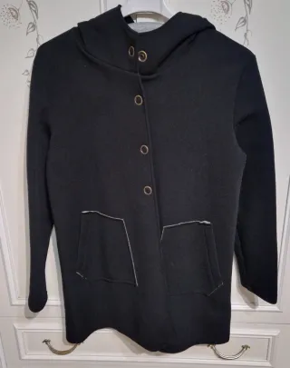 Elegante cappotto nero da donna, perfetto per completare il tuo look. - Taglia M (corrisponde a 38 / 10). - Design classico con revers. - Tessuto morbido e confortevole.