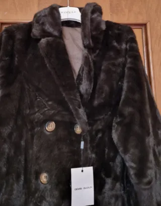 Cappotto donna Taglia unica Poliestere elastico lana Con collo di finta pelliccia chiuso con bottoni davanti con tasche davanti Interno foderato Lunghezza cm 90 da ascella ad ascella cm 60 larghezza spalle cm 46