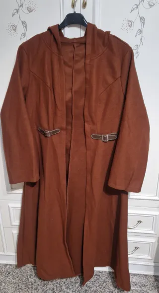 Elegante cappotto lungo da donna, perfetto per completare ogni outfit. Poliestere elastico Lunghezza cm 120 da ascella ad ascella cm 58 larghezza spalle cm 48 - Design con cappuccio. - Dettagli con fibbie in ecopelle. - Lunghezza fino alle caviglie.