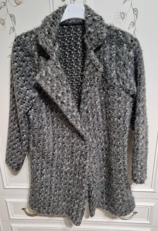 Cappotto donna in maglia autunno/inverno di colore grigio scuro tessuto misto lana e seta molto morbido,taglia M vestibilità comoda in ottime condizioni poco utilizzato. Tanti bellissimi articoli nel mio armadio.