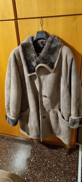 Cappotto shearling lungo color blu navy, taglia 48. Realizzato in vera pelle scamosciata all'esterno e interno in montone caldo e morbido. Modello elegante con chiusura a 3 bottoni frontali e tasche laterali inclinate. Rifiniture ricamate su polsini e bordo del collo, con risvolti in shearling. V Misure (prese a capo steso): • Spalle: 52 cm • Petto (ascella-ascella): 60 cm • Lunghezza: 97 cm Condizioni: ottime, senza difetti visibili, pelle morbida e ben curata. Ideale per la stagione fredda, taglio classico e raffinato. • Spedizione tracciata tramite Wallapop.
