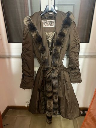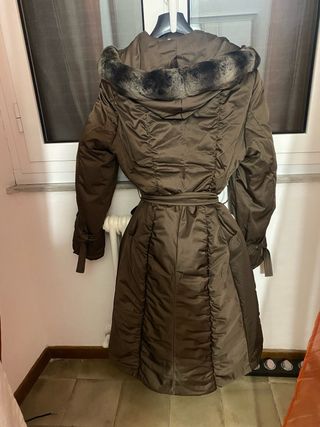 Bellissimo piumino lungo donna con pellliccia staccabile. Chiusura con bottoni e cintura. Due cinture in dotazione. indossato una sola volta. si presenta in perfette condizioni pari a nuovo. Taglia 52.