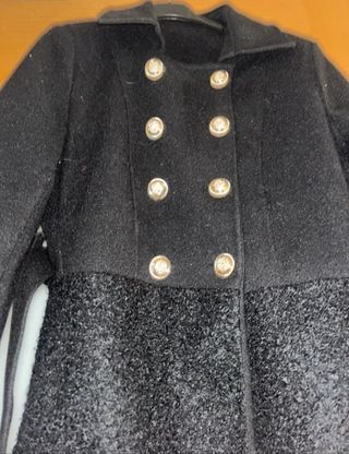 Cappottino da donna in tessuto con maniche e colletto in ecopelle. Cerniera a chiusura da una parte per effetto laterale. Unico difetto come da una foto il colletto che si sfilaccia la parte in ecopelle, il resto è perfetto.