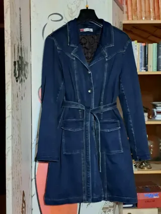 Cappottino in denim dal taglio classico, perfetto per completare ogni outfit. - Tessuto denim resistente. - Cintura in vita per un fit personalizzato. - Tasche applicate sul davanti. - Fodera interna imbottita #cappottinojeans #soprabitojeans #denim #maryanne