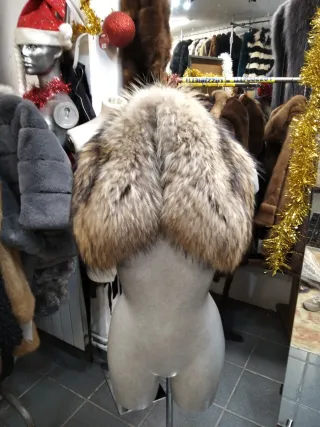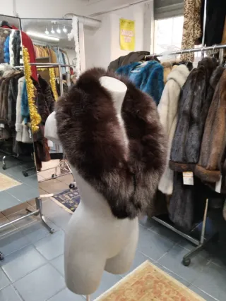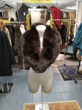 Collo in Vera Volpe Naturale Colore Marrone Testa di Moro Perfettamente Foderato e Cone Nuovi - Ampio e Filto - Design a Scialle - Ideale oer impreziosire le vostre Giacche e Cappotti Invernali!