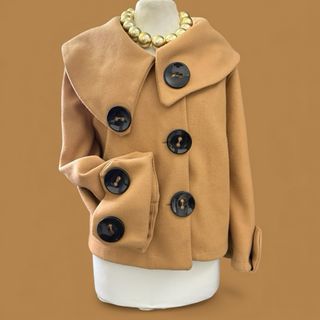 Elegante cappottino da donna. - Doppio petto con bottoni dorati. - Dettagli sulle maniche. - Tasche frontali. Spalle 41 cm Lunghezza 85 cm