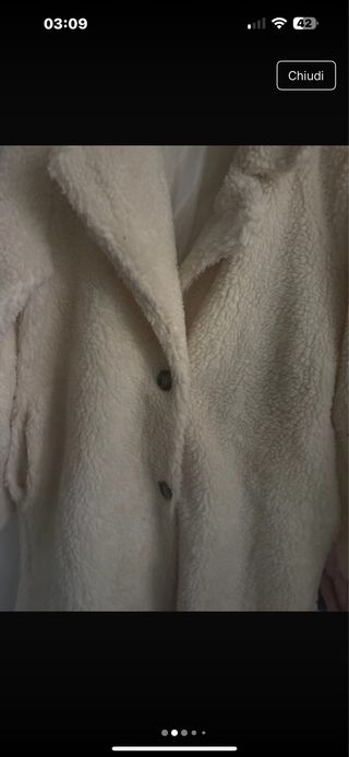 Morbido cappotto stile teddy. - Chiusura con bottoni. - Collo ampio. - Tasche laterali.