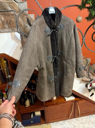 Bellissimo ed Elegante cappotto shearling vintage in vera pelle scamosciata, perfetto per completare il tuo look. Ben tenuto non ha strappi né buchi interni integri, la taglia dovrebbe essere una L nel caso interessa posso fornire misure . Prodotto di qualità. Ottimo rapporto qualità prezzo. Tieni presente che sono capi vintage possono avere segni naturali del tempo. - Shearling - Vera pelle scamosciata - Vintage . - Fodera interna in pelliccia sintetica. - Chiusura con lacci e bottoni a forma di rombo.