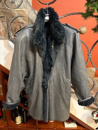 Elegante cappotto in vera pelle, stile shearling vintage, perfetto per completare il tuo look. Design molto bello, ben tenuto , usura del suo tempo ,abbastanza usato ma ben conservato , la giacca ha un piccolo taglietto in superficie avanti lato destro il tutto evidenziato in foto ( vedi foto ), per il resto in ordine , la taglia dovrebbe essere una Large nel caso interessa posso fornire misure. Prodotto di qualità, ottimo rapporto qualità prezzo. Tieni presente che sono capi vintage possono avere segni naturali del tempo . - Dettagli in pelliccia sintetica. - Design classico e intramontabile.