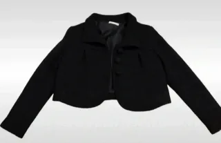 Elegante mantellina nera da donna taglia 42 in ottime condizioni. - Chiusura con bottoni. - Tasche frontali. - Design corto e moderno.