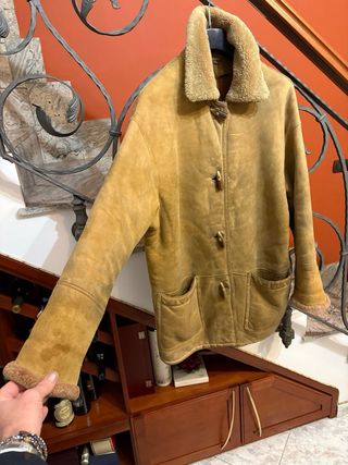 Elegante cappotto in montone shearling, donna , realizzato in vera pelle scamosciata. Tenuta in ordine non ha strappi ne tagli interno integro, usura del suo tempo abbastanza usata ma ben conservata. Ottimo rapporto qualità prezzo. Tieni presente che sono capi vintage possono avere segni naturali del tempo. La taglia e una M come da foto etichetta e ho inserito anche misure in centimetri Misure Ascella ascella cm 52 Spalla spalla cm 44,5 Lunghezza maniche cm 65 Lunghezza totale cm 80 Capo vintage Vera pelle scamosciata. Interno in shearling caldo e confortevole. - Design classico con chiusura a bottoni.