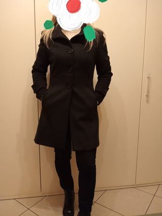 Elegante cappotto da donna. - Taglia: é indicata una 46...ma io consiglio per una 40 o 42.. perché sul torace e le spalle é piccolo - Colore: nero - Marca: Nemo