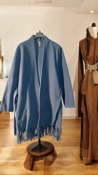 Cappotto da donna nuovo mai usato, taglia unica. Modello aperto con cintura e frange sul fondo. Tessuto morbido e caldo, vestibilità ampia. No perditempo grazie!