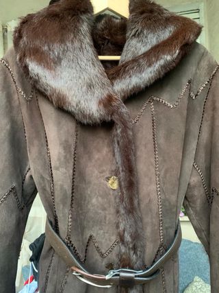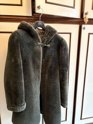 Montone shearling garantito originale taglia 46 ma può vestire anche una 48 o se spostati i bottoni una 44. Capo caldissimo e di ottima fattura, all'interno morbido e confortevole.