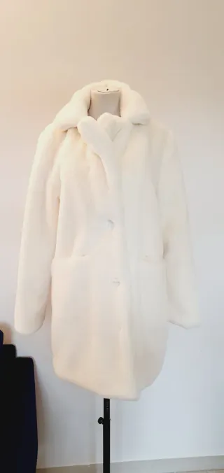 Morbido cappotto in stile teddy. - Tessuto effetto pelliccia. - Collo a revers. - Fodera interna. e stato messo una volta lo vendo perché e grande