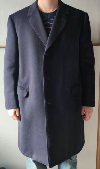Bellissimo cappotto invernale in lana cashmere nylon e viscosa. La taglia è da 12 anni. Nella foto indossato da me: 185 cm x 84 kg. Come si vede mi è corto di manica ma per il resto andrebbe bene, di solito porto una M/L. Per questo motivo metto taglia S, ma verificare misure in centimetri prima dell'acquisto. Condizioni eccellenti. Colore blu scuro senza sbavature (potrebbe sembrare dalle foto).Made in Italy. Armani Junior. - spalle 38/39 cm - petto 52 cm - lunghezza 85 cm - spalle->manica 60 cm