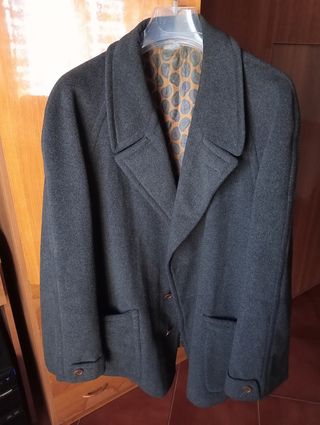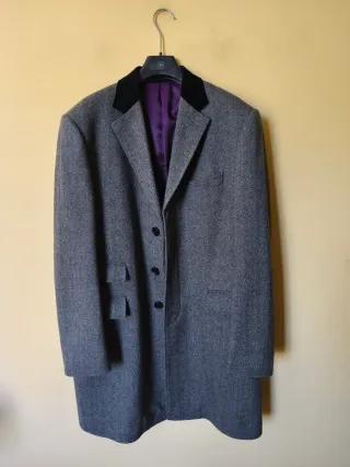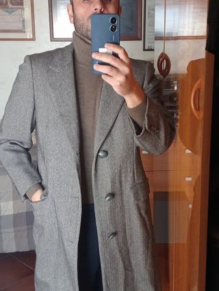 Soprabito invernale in tweed (80 lana 20 nylon). Maniche raglan, bottoni a scomparsa, due tasche laterali. Usato qualche volta ma data l'alta qualità del prodotto non ha difetti particolari. Taglia 48, vestibilità da L. - petto 56/58 cm - lunghezza 88/89 cm