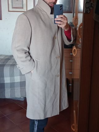 Cappotto beige autunno/inverno vintage stile tranch, ideale per uomo. Veste una taglia 52 ideale per persone che prendono L o XL.