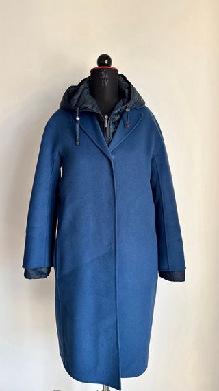 Cappotto e Piumino Max Mara The Cube Taglia 38 IT Colore Blu Cappotto 100% Lana Vergine modello cucito a mano chiusura con bottoni a pressione Taglia 38 IT Piumino The Cube con cappuccio in vera piuma d’oca chiusura con cerniere doppio cursore Taglia 38 IT Elegante cappotto Max Mara in un bellissimo colore blu. Un capo versatile e raffinato. - Design con cappuccio integrato. - Chiusura frontale con bottoni. - Maniche lunghe.