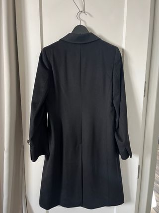Cappotto donna Max Mara nero, lungo sotto il ginocchio, chiusura con bottoni a scomparsa monopetto, taglio classico, linea dritta. Fodera interna logata, Taglia indicata su etichetta 44 IT ma veste piccolo, consiglio a 40-42. Tessuto 70% lana 30% alpaca morbida. Misure: da spalla a spalla 44 cm., da sotto ascella all'altra 50 cm., lunghezza totale 120 cm. Non ha difetti, no strappi no macchie no scuciture, ma è stato chiuso tanto tempo inutilizzato in un armadio in mansarda e avrebbe bisogno di una rinfrescata in lavanderia. No offerte, prezzo non trattabile grazie