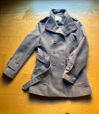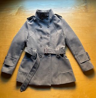 Piumino elegante di Max Mara in colore grigio. Design a doppia chiusura con bottoni. Cintura regolabile abbinata. Collo alto con dettagli di bottoni. Polsini con chiusura a bottone. Lo possiedo da più di 20 anni. Sebbene sia etichettato come taglia M, corrisponde a una S attuale. È piuttosto usato. Faccio sconti per acquisti multipli.