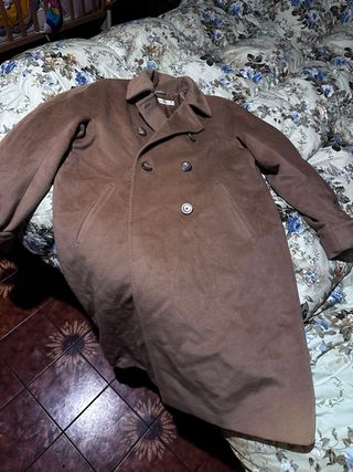 Elegante cappotto doppiopetto in lana. - Colore marrone scuro. - Chiusura con bottoni. - Tasche laterali. - Collo ampio.