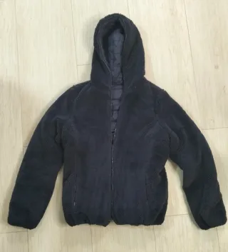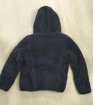 Cappotto reversibile di colore blu navy. - Esterno morbido e soffice al tatto. - Interno imbottito. - Cappuccio integrato.