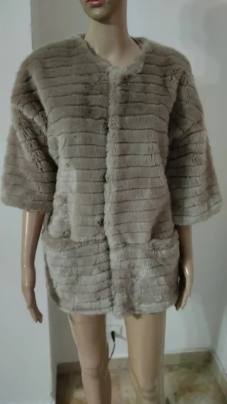 Elegante pelliccia da donna, perfetta per completare ogni outfit. - Morbida al tatto. - lunghezza 70cm - Maniche a tre quarti. - Tasche frontali applicate.