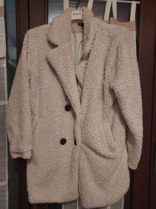 Caldo cappotto stile teddy, perfetto per le giornate più fredde. La vestibilità è comoda e si adatta bene a una taglia M o L. - Tessuto morbido e voluminoso. - Chiusura con bottoni. - Tasche laterali. - Fodera interna.