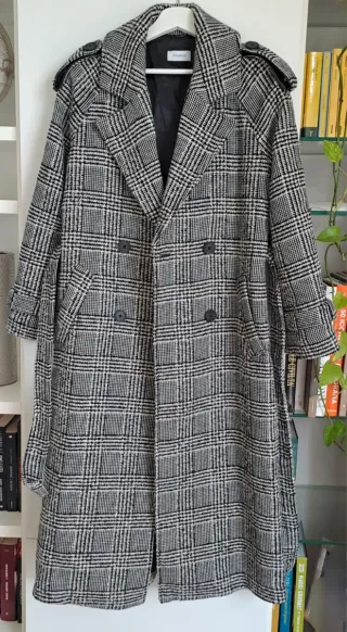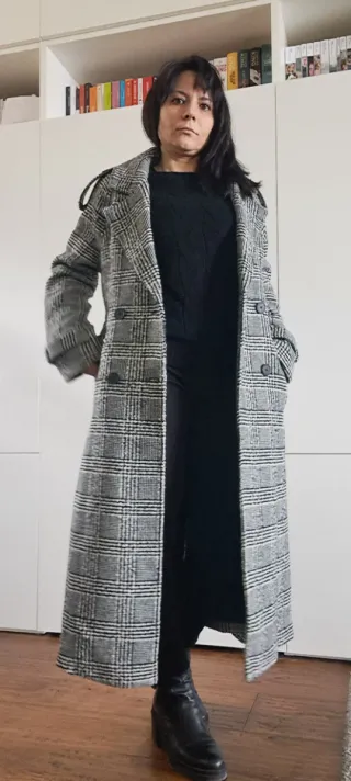 Splendido cappotto Motivi taglia M (42 IT), modello doppio petto, lungo ed elegante. Indossato una sola volta, è nuovo senza cartellino. Lo vendo solo perché per me risulta grande. Fantasia check bianco/nero molto raffinata, cintura in vita per valorizzare la silhouette, perfetto sia aperto che chiuso. Composizione (come da etichetta in foto): 79% poliestere 11% lana 8% acrilico 1% viscosa 1% poliammide Caldo ideale per autunno/inverno e mezza stagione. Prezzo di acquisto: 229 € Collezione Autunno/Inverno di quest’anno. Disponibile per altre foto o misure