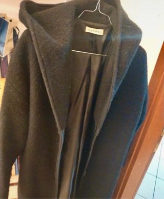 Cappotto sfoderato con cappuccio no brand. Colore grigio scuro (il colore è più scuro di quello in foto). Rimane aperto davanti, non ha né bottoni né cerniera. La taglia non è indicata, misure: spalle cm 46, larghezza torace presa dietro sotto l’ascella da cucitura a cucitura cm 52, lunghezza cm 90 circa. Condizioni ottime. 100% lana. AR01 #cappotto #cappottino #sfoderato #lana #grigio