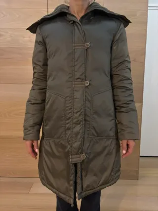 Cappotto loden donna verde inglese. Ottimo, ha solo un piccolo difetto nella parte inferiore destra (vedi foto). Misure in foto
