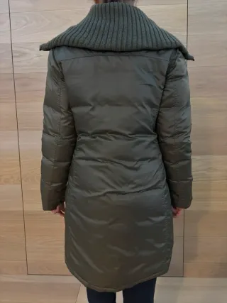 Giubbotto Calvin Klein Jeans invernale donna color verde oliva, caldo e imbottito, con ampio colletto a coste per maggiore protezione dal freddo. Chiusura con bottoni e cerniera e tasche frontali. Vestibilità regolare, taglia M