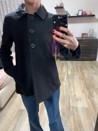 Elegante cappotto corto grigio, perfetto per completare il tuo look. - Chiusura con bottoni. - Design moderno e versatile. Vedi foto - da ricucire fodera interna in un ascella e nel fondo dietro