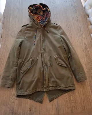 Cappotto da uomo BoB con un design unico. - Fodera interna colorata con motivo geometrico, si può rimuovere - Coulisse in vita per regolare la vestibilità. - Cappuccio foderato. - Tasche frontali con dettagli colorati.