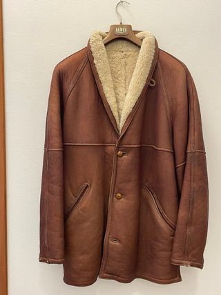 Si tratta di un giaccone in montone (o shearling) da uomo, di colore marrone, con l'interno in pelliccia color crema. Materiale: Vera pelle di montone (shearling). Colore: Esterno marrone, fodera interna in lana color crema. Stile: Giacca/cappotto invernale, caldo e resistente, ideale per le giornate fredde. I capi in shearling sono un classico della moda maschile e sono tornati di tendenza nelle recenti collezioni autunno-inverno. Lo shearling è un materiale pregiato apprezzato per le sue eccezionali capacità termiche, morbidezza e resistenza.