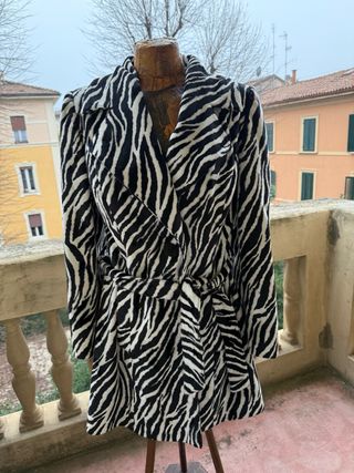 Cappottino zebrato peloso con cintura