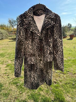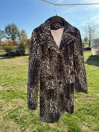 Cappottino con un simpatico disegno maculato, perfetto per aggiungere un tocco di stile. - Tessuto peloso morbido al tatto. - Design maculato unico. - chiusura tre bottoni - martingala dietro Usato poche volte ottime conizioni