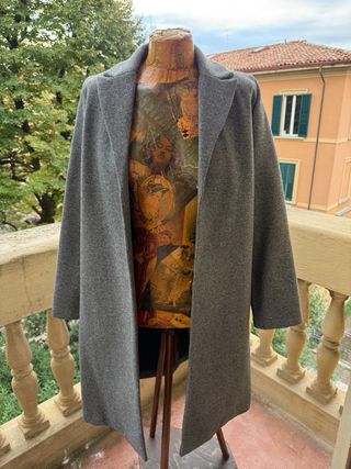Elegante cappotto Zara di colore grigio, realizzato in panno. - Linea dritta. - Collo a revers - Tasche laterali - Lunghezza al ginocchio. Usato pochissime volte ottime condizioni