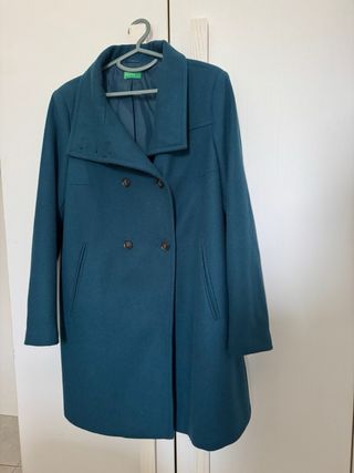 🧥 Abrigo Benetton en color verde, diseño elegante y atemporal 💚. Cuello versátil que permite distintos estilos de uso. Prenda usada en perfectas condiciones, bien cuidada y lista para usar. Ideal para el día a día o looks más formales. *precio negociable Talla 48 Italia-Talla46 España 📦 Consulta más productos en mi perfil. 🚚 ¡Envío rápido!