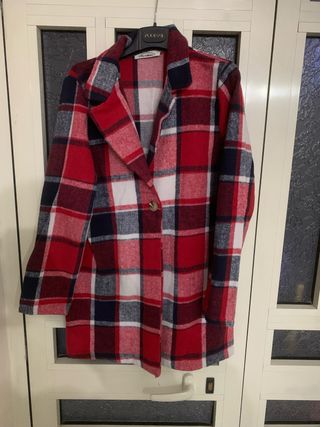 Cappotto New Collection con un classico motivo a quadri. - Fantasia a quadri rossi, bianchi e blu navy. - Chiusura con bottone singolo. - Design a cappotto.