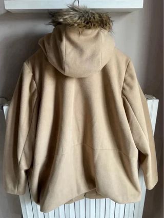 Elegante giaccone beige con cappuccio bordato in ecopelliccia Tessuto in misto viscosa, molto morbido. Indossato 1/2 volte, praticamente nuovo. Taglia 56, foto con misure. Larghezza torace cm 134. Prodotto italiano. Prezzo eccezionale 😎 - Chiusura frontale con zip. - Due tasche laterali con zip. - Design moderno e confortevole.