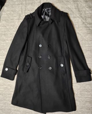 Cappotto Uomo Nero marca Blustaff usato in buone condizioni misura M (anche di più) altezza 100 cm larghezza spalla 46 45% lana - 30% poliestere - - 25% viscosa fodera 100% poliestere - Design classico con doppio petto. - Dettagli sulle spalle.