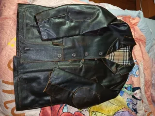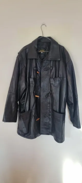 Giacca/cappotto in pelle da uomo. Cerniera sul davanti - Chiusura con alamari in legno. - Tasche frontali. - Collo ampio. È una taglia M ma veste tranquillamente una L