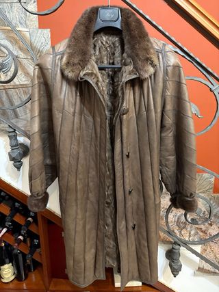 Stupendo ed Elegante cappotto donna realizzato in vera pelle e pelliccia di alta qualità, un capo Must vintage. Double face, due cappotti in uno, da una parte vera pelle e dall altro pelliccia tutto autentico. Tenuto in perfette condizioni, indossato pochissime volte Bellissimo in tutto le foto parlano da se’. Ideale per le giornate fredde. Ottimo rapporto qualità prezzo. Per la taglia ho inserito misure in cm, cosi da essere piu precisi Misure: Ascella ascella cm 60 Spalla spalla cm 44,5 Lunghezza maniche cm 61 Lunghezza totale cm 95 - Capo vintage tutto autentico - Realizzato in vera pelle e pelliccia. - Design double face.