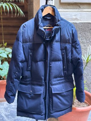 Bellissimo giubbotto Paul & Shark in colore blu. - Tessuto trapuntato. - Dettagli in lana. - Tasche frontali con patta. Anti pioggia Loro Piana 100% cashmere Piuma Cappuccio a scomparsa