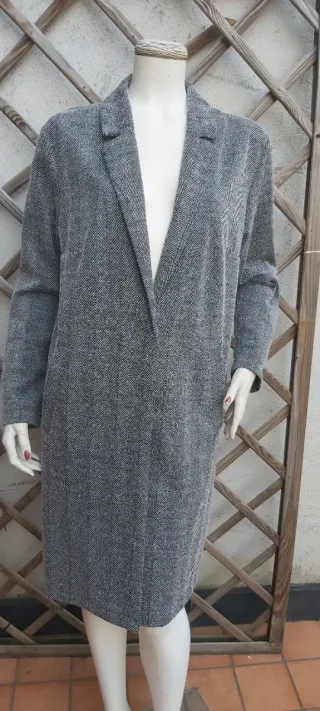 Cappottino con fantasia a spina di pesce. - Fantasia a spina di pesce. - Collo a revers. - Maniche lunghe. - Tasche laterali. Cappottino Divided tgL,modello oversize ,veste tranquillamente tg48, sfoderato, come nuovo. Spalle 45 cm Giro seno 110 cm Giro fianchi 120 cm Lunghezza 98 cm