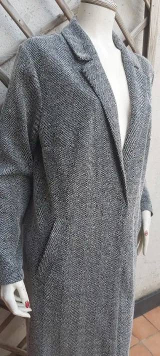 Cappotto vintage doppiopetto in tweed a spina di pesce, colore marrone/beige. Ha i rever in velluto marrone, dettaglio molto carino che lo rende diverso dai soliti cappotti. È caldo, foderato e veste comodo. Ottimo per l’inverno, sta bene sia con jeans che con pantaloni più eleganti. Stile classico, facile da abbinare. Condizioni buone, normali segni del tempo dovuti all’età ma nessun difetto grave