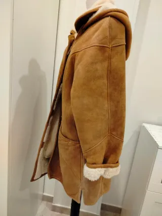 Cappottino donna realizzato in vera pelle scamosciata, modello shearling, con cappuccio.Un capo dal fascino vintage, perfetto per completare il tuo look. Il cappottino presenta alcuni diffetti piccolo taglietto avanti in alto lato destro, vicino al taschino lato sinistro e vicino al polsino lato sinistro dí piccola entità il tutto evidenziato in foto, il prezzo e piu basso per far si che chi lo acquista lo possa sistemare. Per il resto in ordine usura del suo tempo. Ottimo rapporto qualità prezzo. Per la taglia ho messo misure in cm cosi da essere piu certi Misure Ascella ascella cm50 Spalla spalla cm51,5 Lunghezza tot cm77.5
