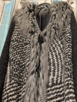 Cappotto tweed con polsini pelliccia sintetica